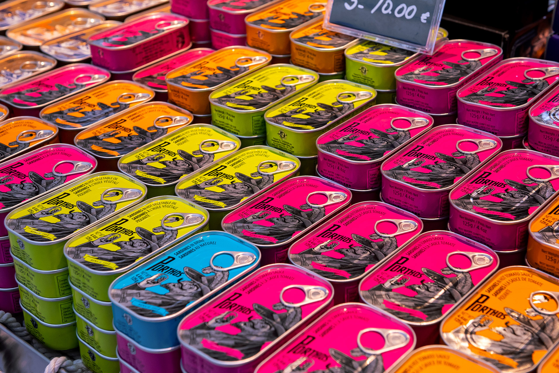Bacalhau, conservas de peixe, peixes secos, atum Açores, peixes fumados.degustação de conservas