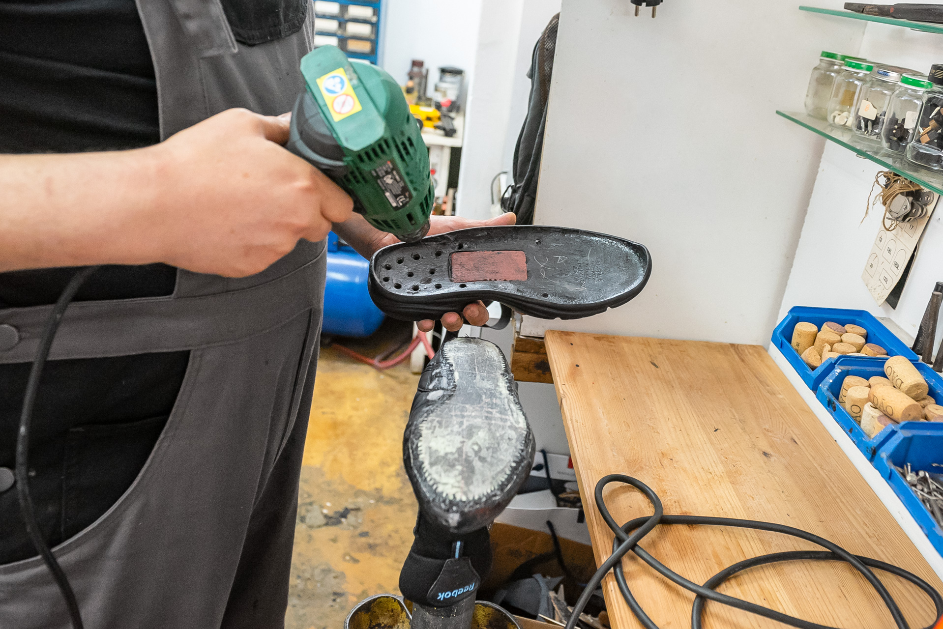 Reparação de calçado, carteiras, graxas e bálsamos para o tratamento do couro, cordões para calçado formal e desportivo, reparação de malas de viagem.