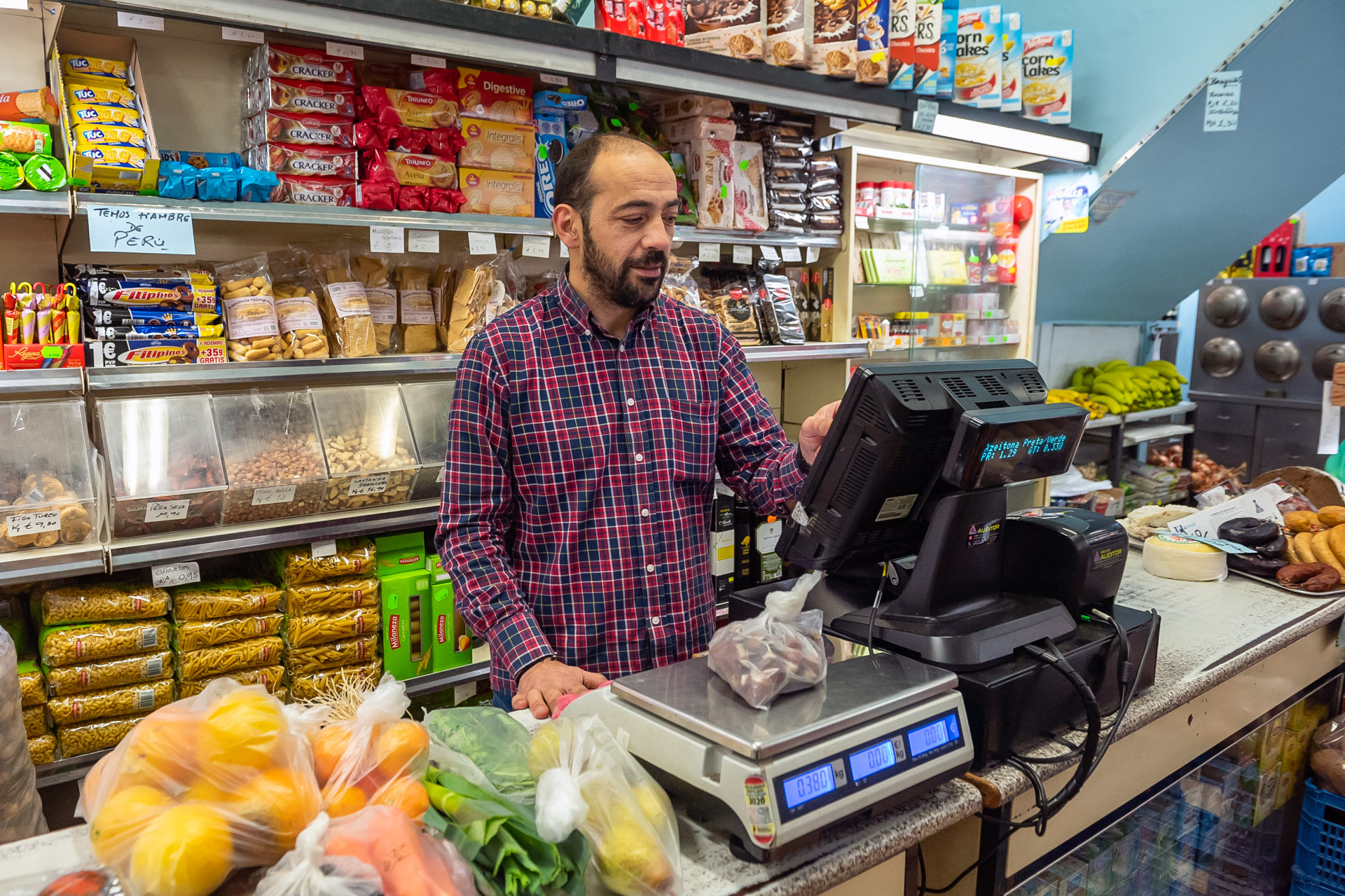 Fruta, legumes, enchidos, produtos de limpeza