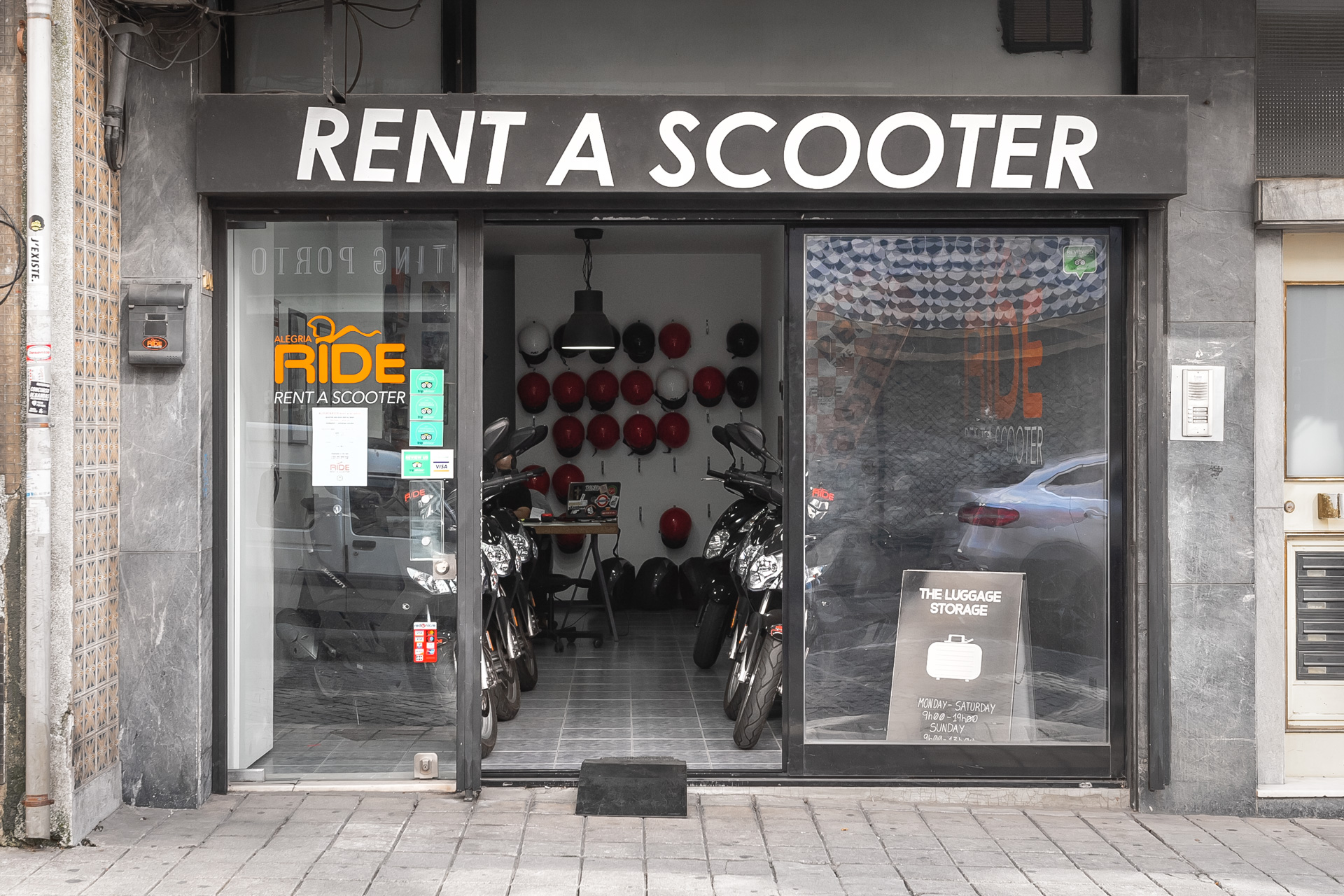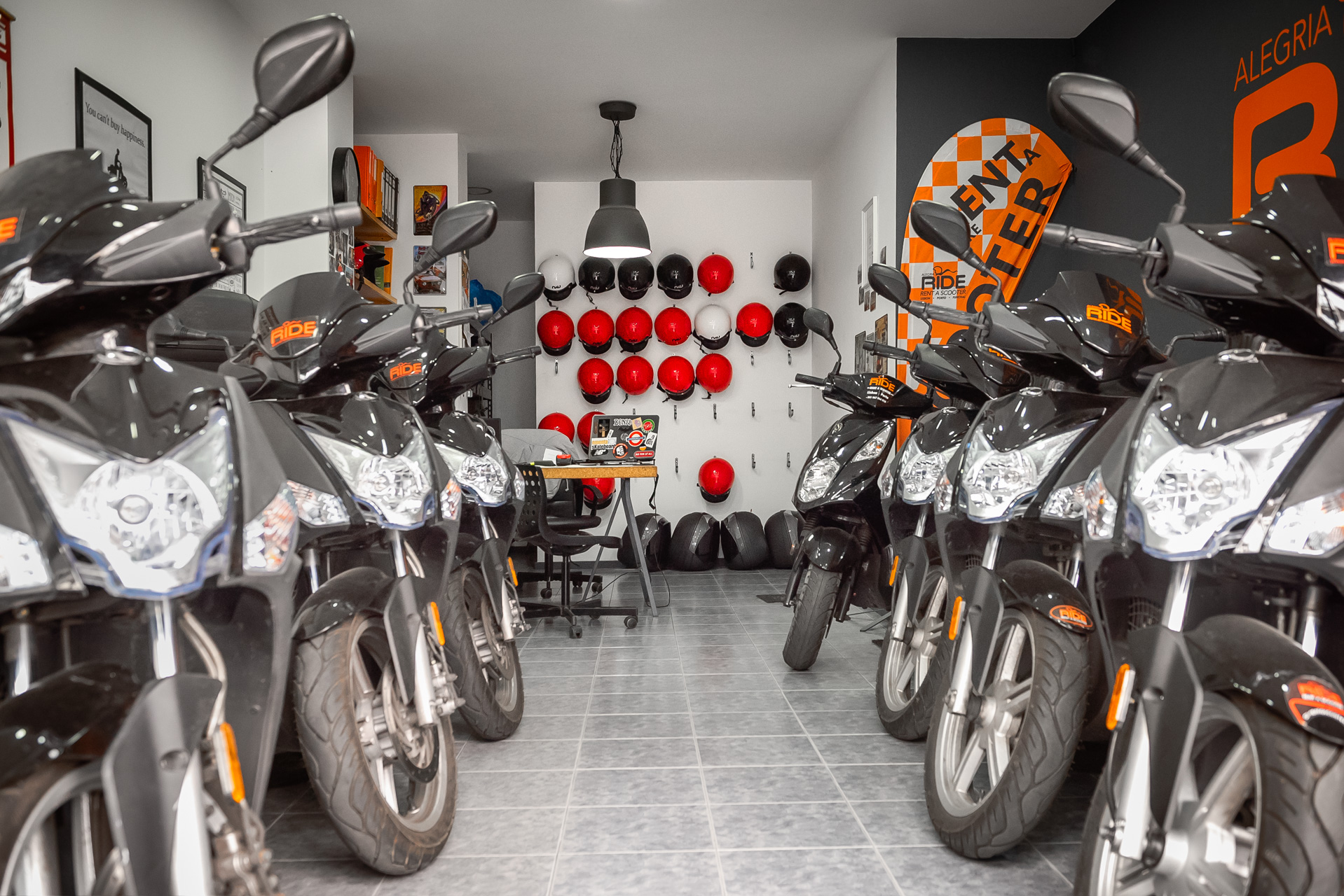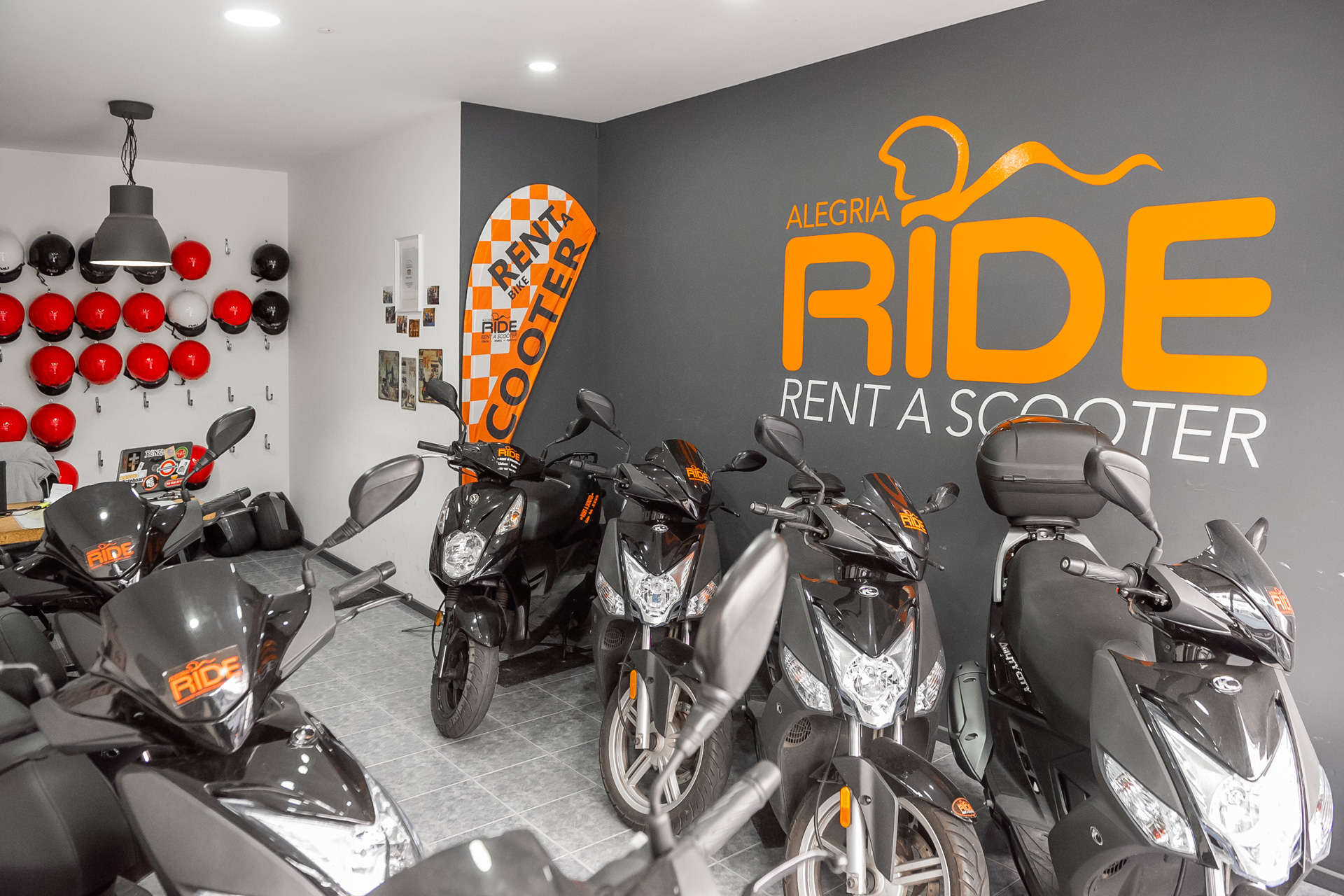 A AlegriaRide Rent-a-Scooter apresenta-se como um serviço local de rent-a-scooter e motorizadas, primando pelo relacionamento próximo e autêntico com os seus clientes. Neste estabelecimento estão disponíveis várias scooters e motorizadas seguras e de qualidade comprovada, de diversas marcas reconhecidas internacionalmente. O cliente, numa lógica de atendimento personalizado, almejando um serviço completo, encontrará no AlegriaRide uma equipa de entusiastas sempre disponíveis para oferecer os melhores conselhos ou sugestões para desfrutar, com todas as condições, deste meio de transporte inteligente e divertido.