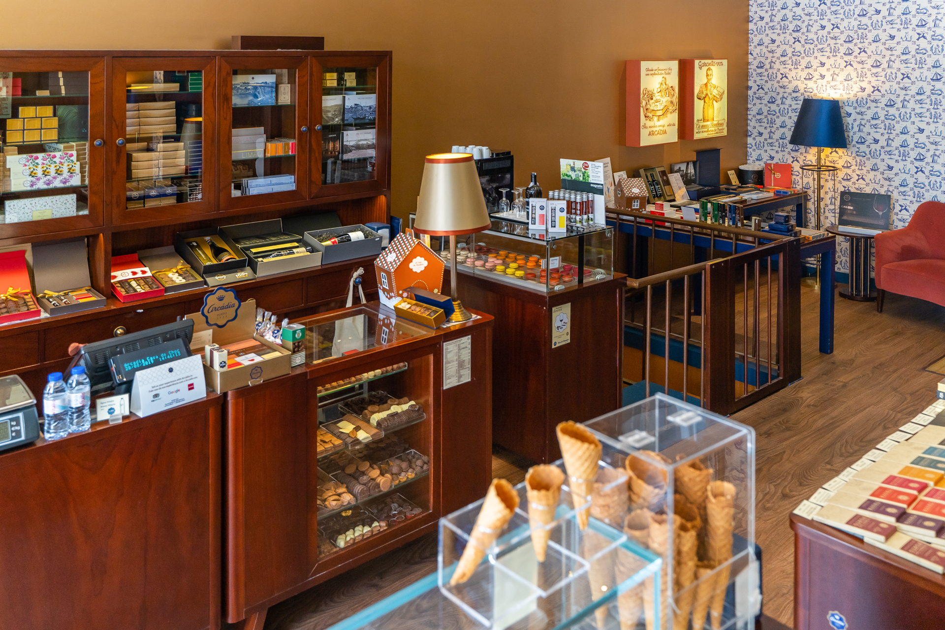 Chocolates, amêndoas, cafetaria, café, macarons, quindim, bolos inteiros, gelados artesanais
