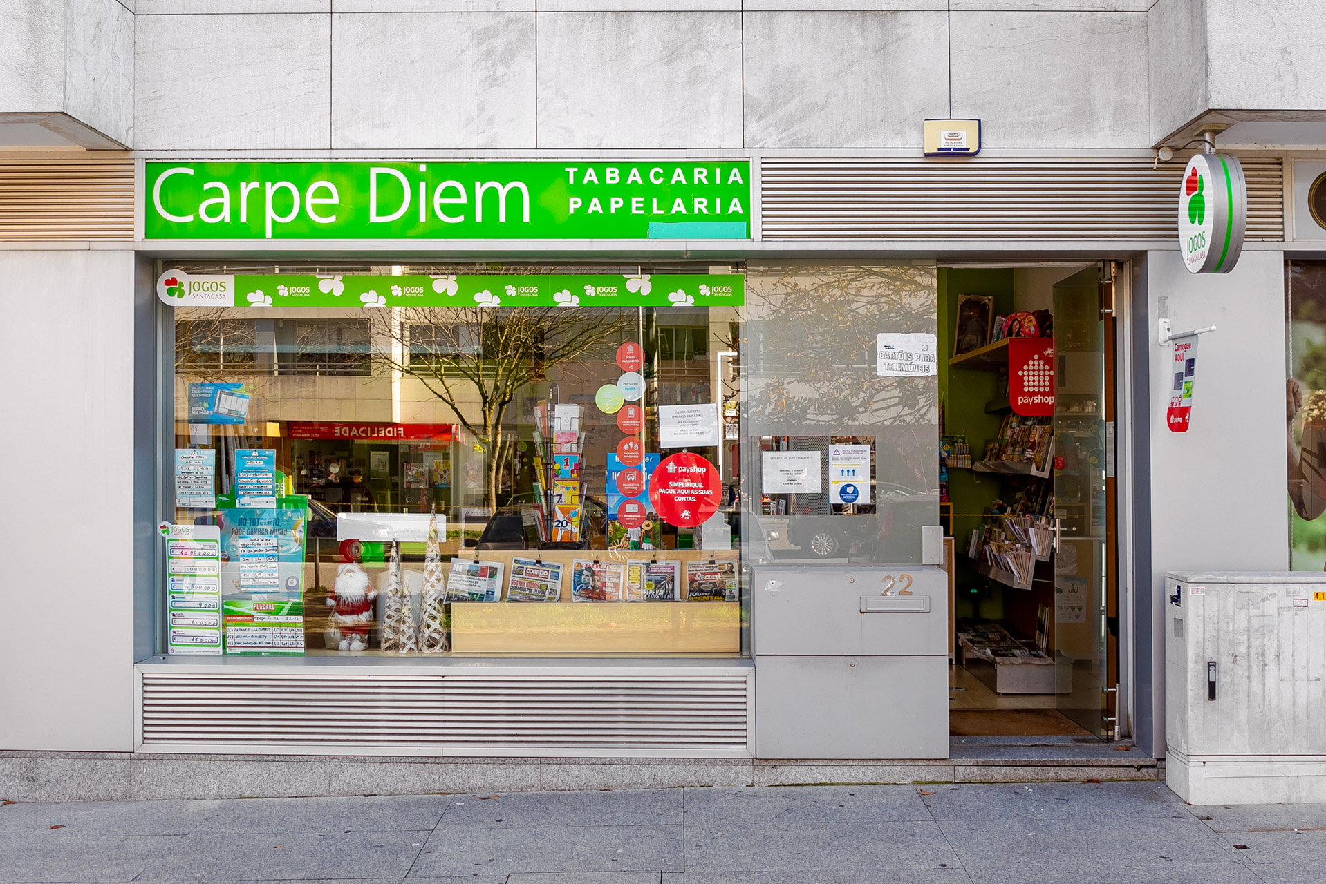 Se aproveitar o dia significa conseguir otimizar o que se tem para fazer, de modo a ficar livre para se fazer o que se gosta, a Carpe Diem escolheu na perfeição o seu nome. Esta papelaria e tabacaria é um espaço multifacetado e que oferece uma panóplia de serviços, de modo a que o cliente poupe tempo e usufrua de todos os serviços no mesmo espaço. Pode encontrar neste espaço jornais e revistas, encontrar cartões para ocasiões especiais, comprar tabaco de diversas marcas e acessórios para fumadores, tentar a sua sorte nos Jogos Santa Casa – Euromilhões, Placard, raspadinhas, Totoloto, lotarias – comprar material escolar, levantar a sua encomenda UPS e usufruir dos serviços PayShop, Cartões EPAY e Moneygram.