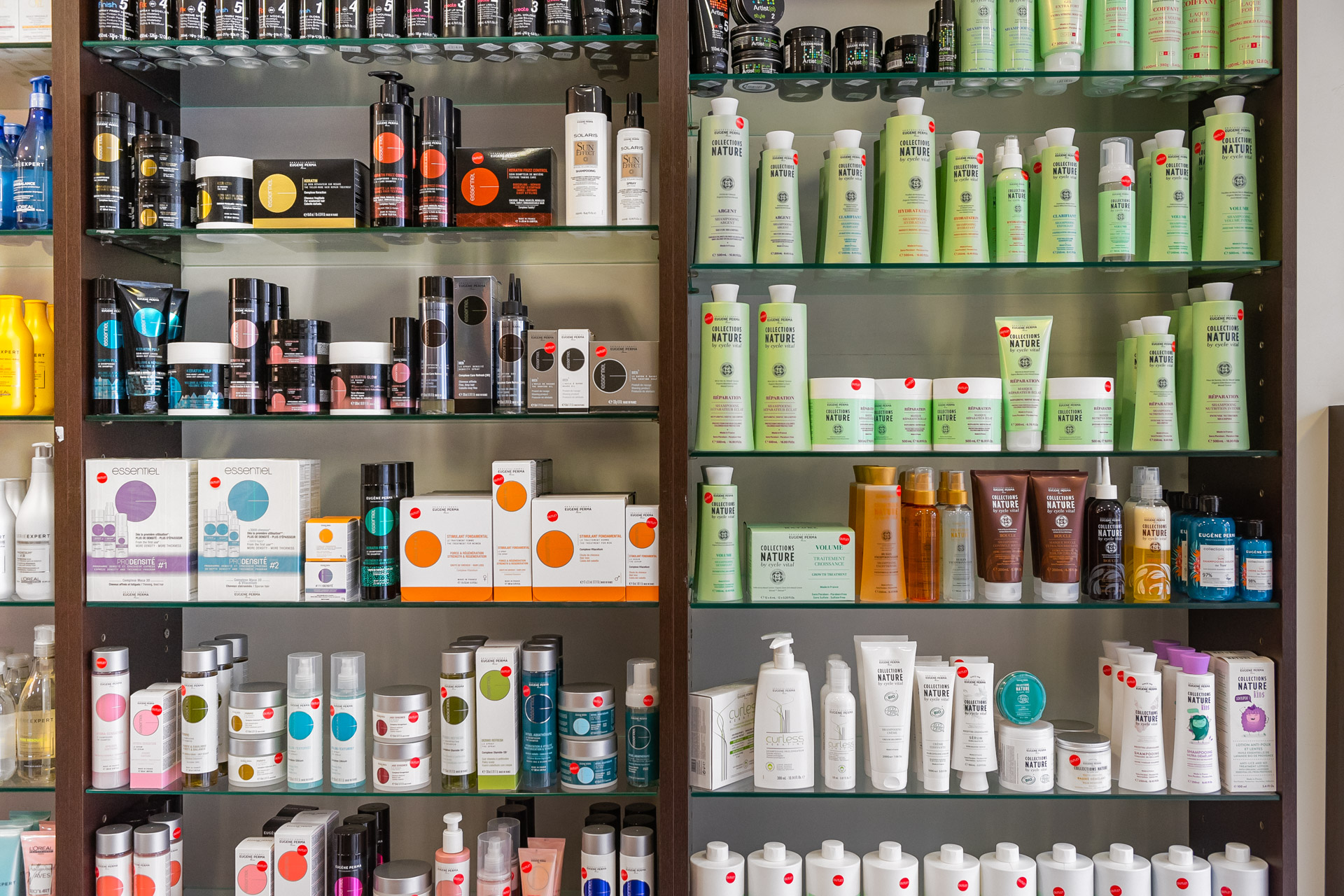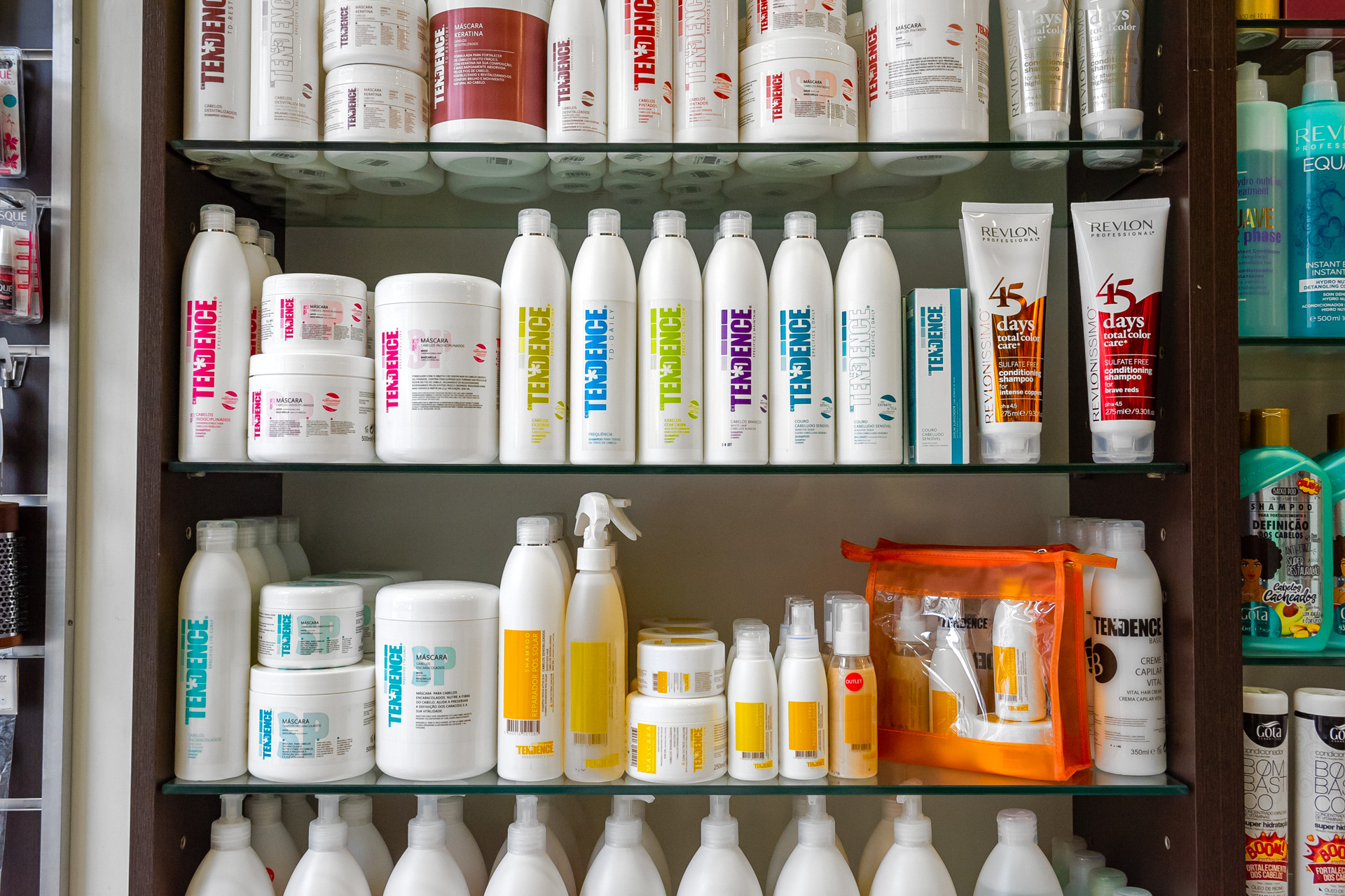 Shampoos, lacas, espumas, cremes de beleza, maquilhagem, produtos de estética, ceras de depilação, mobiliário