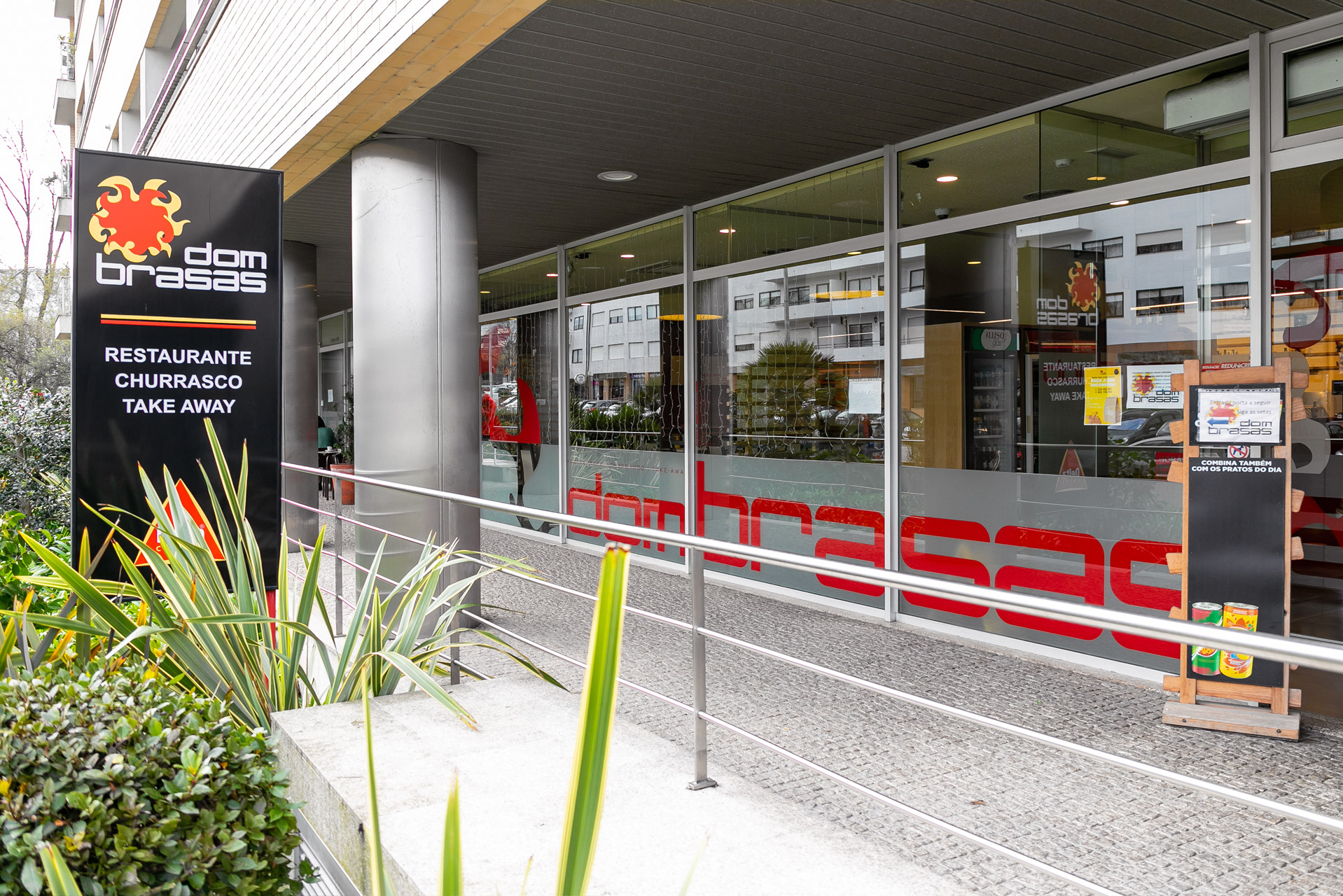 O Dom Brasas Porto pertence a uma rede que conta já com quatro espaços abertos. Este é o único na cidade do Porto. O Dom Brasas é conhecido como um restaurante especializado em churrasco e comida cozinhada na brasa, orientado para o take-away. Com um menu especializado em cozinha tradicional portuguesa, conta com pratos locais e regionais. Há pratos de carne, como frango no churrasco, churrasco misto, entrecosto, coelho na brasa, espetada de porco preto, rojões à moda da casa, posta de vitela à Dom Brasas, entre outros, pratos de peixe, com variações de bacalhau, polvo, salmão, lulas, saladas, a sua versão da famosa francesinha, sopas para todos os gostos e sobremesas típicas portuguesas.