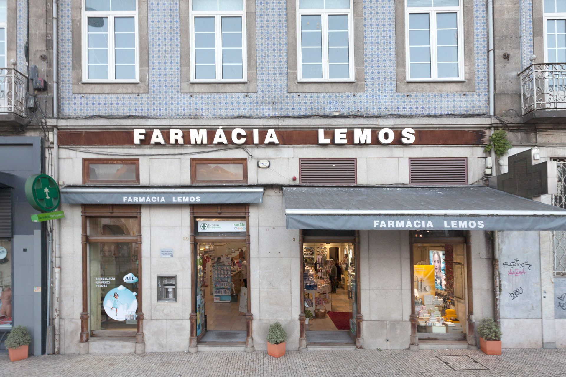 A Farmácia Lemos é uma farmácia histórica, das mais antigas da cidade. Foi fundada em 1780 e, desde essa época até 1801, pertenceu aos Frades Carmelitas do Carmo, tendo passado por várias gerências até aos dias de hoje. Distingue-se pela competência técnica dos seus profissionais, diversidade e versatilidade dos produtos e serviços que coloca à disposição dos seus clientes. As suas instalações são modernas e dinâmicas, sem nunca deixar de investir na qualidade e simpatia no seu atendimento. Além da venda de medicamentos, a Farmácia Lemos trabalha nas áreas de laboratório, ortopedia e perfumaria, disponibilizando serviços como, por exemplo, determinação do peso e IMC, medição da pressão arterial, colesterol total e glicemia, testes de gravidez, administração de vacinas e injetáveis, entre outras soluções.