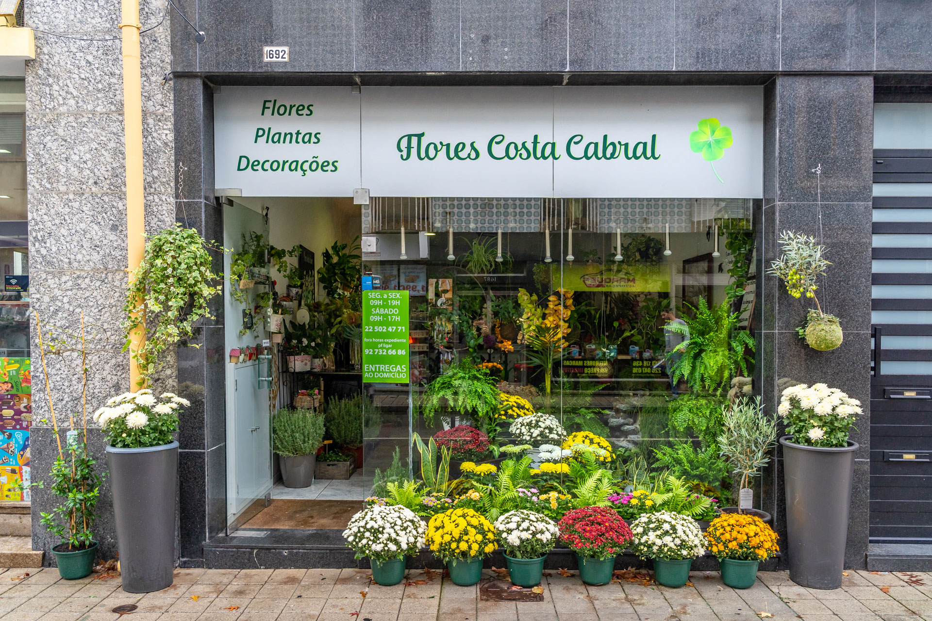 A loja Flores Costa Cabral foi fundada a 16 de setembro de 2017. Aqui encontrará uma grande diversidade de flores e plantas naturais. As flores são um excelente presente e uma forma clássica de assinalar ocasiões especiais. Na Flores Costa Cabral encontrará maravilhosos e criativos arranjos florais da autoria da florista Maria Manuela Rebelo que poderá adquirir ou mandar fazer para todo o tipo de ocasiões. Mas neste estabelecimento encontrará muito mais do que flores e arranjos florais. Poderá também adquirir diversas plantas em vasos que poderá usar para decorar a sua casa ou jardim, tornando-o mais verde e arejado.