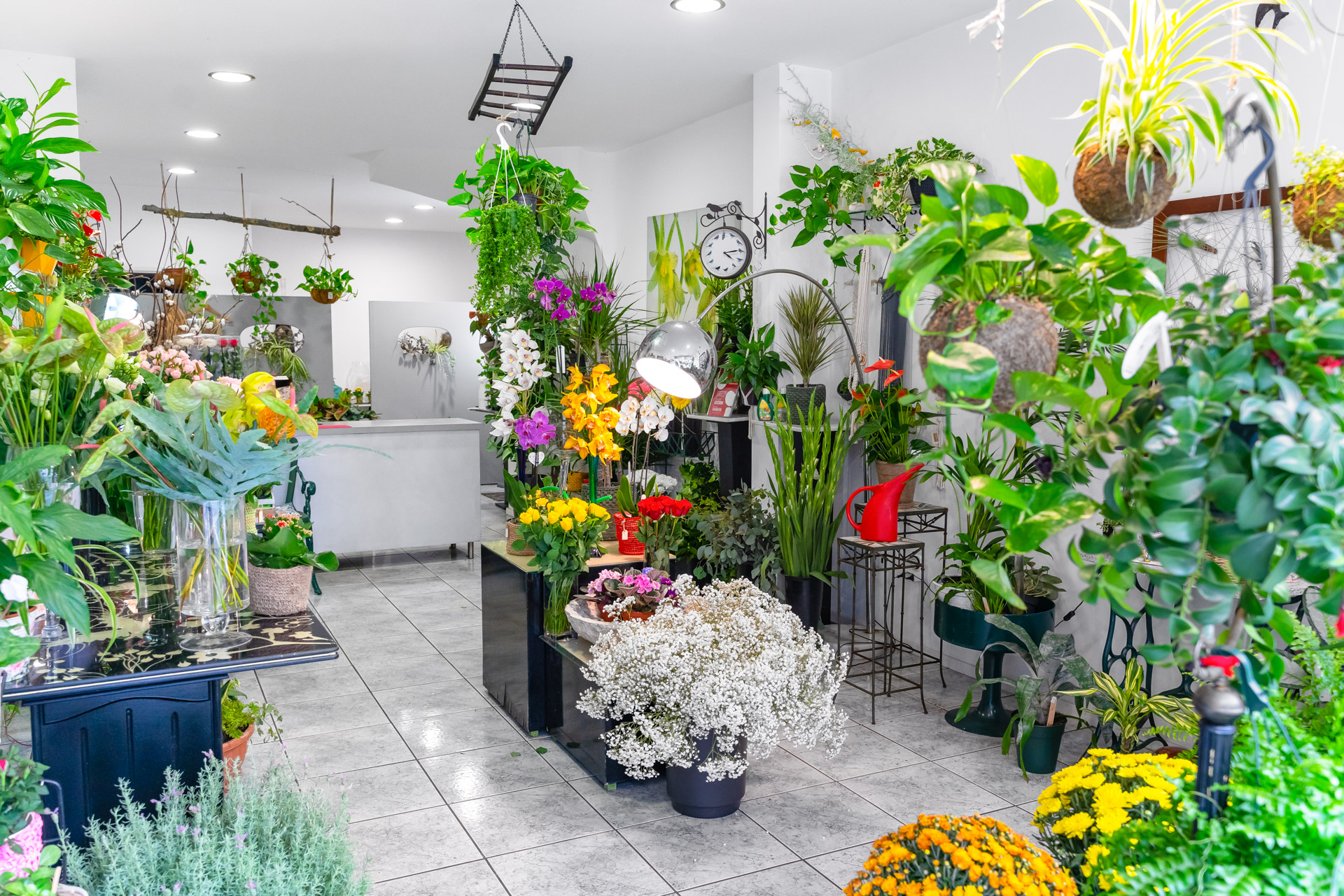 Flores, plantas naturais, arranjos, produtos artesanais