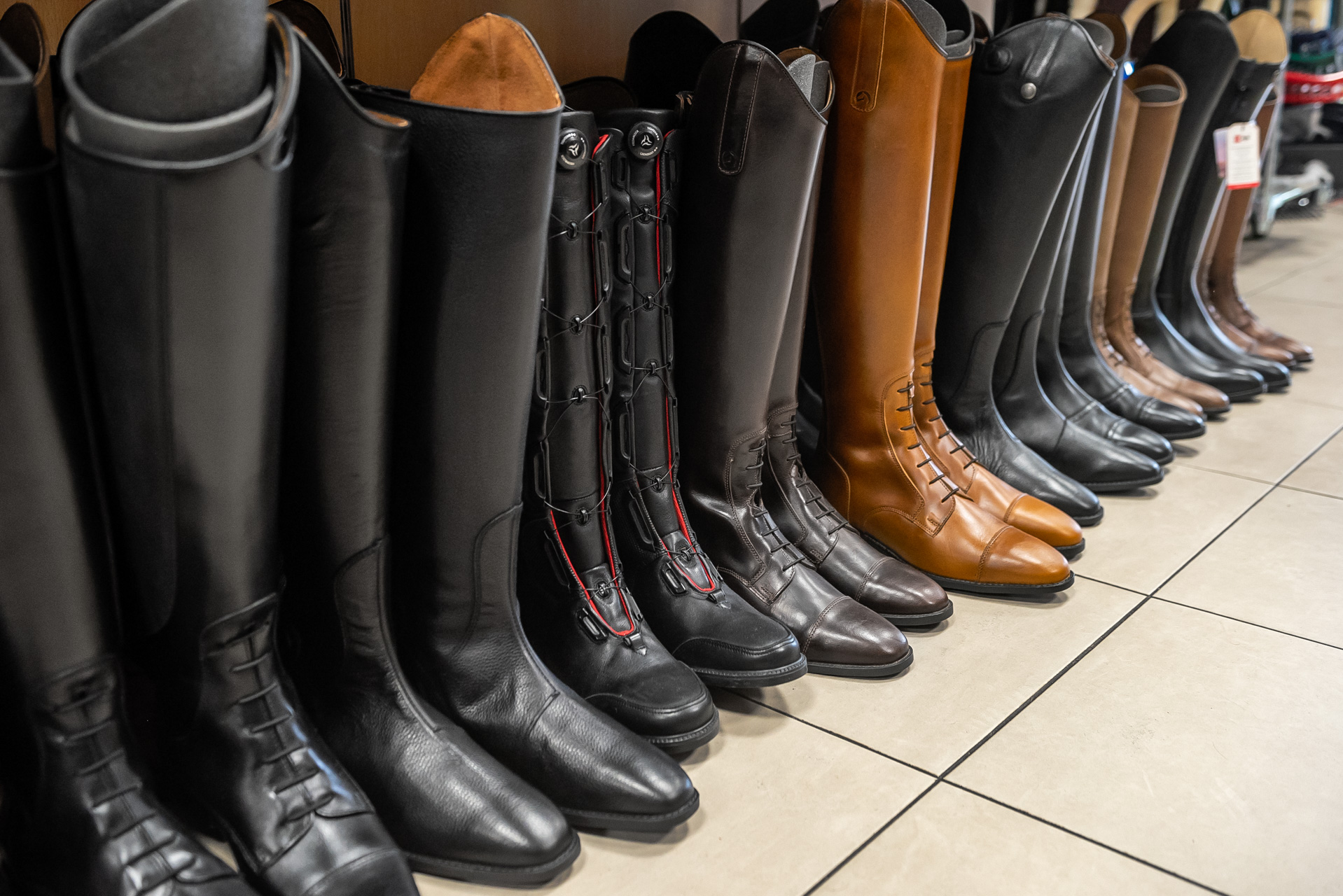Roupa, botas de equitação, selas, luvas, artigos de equitação