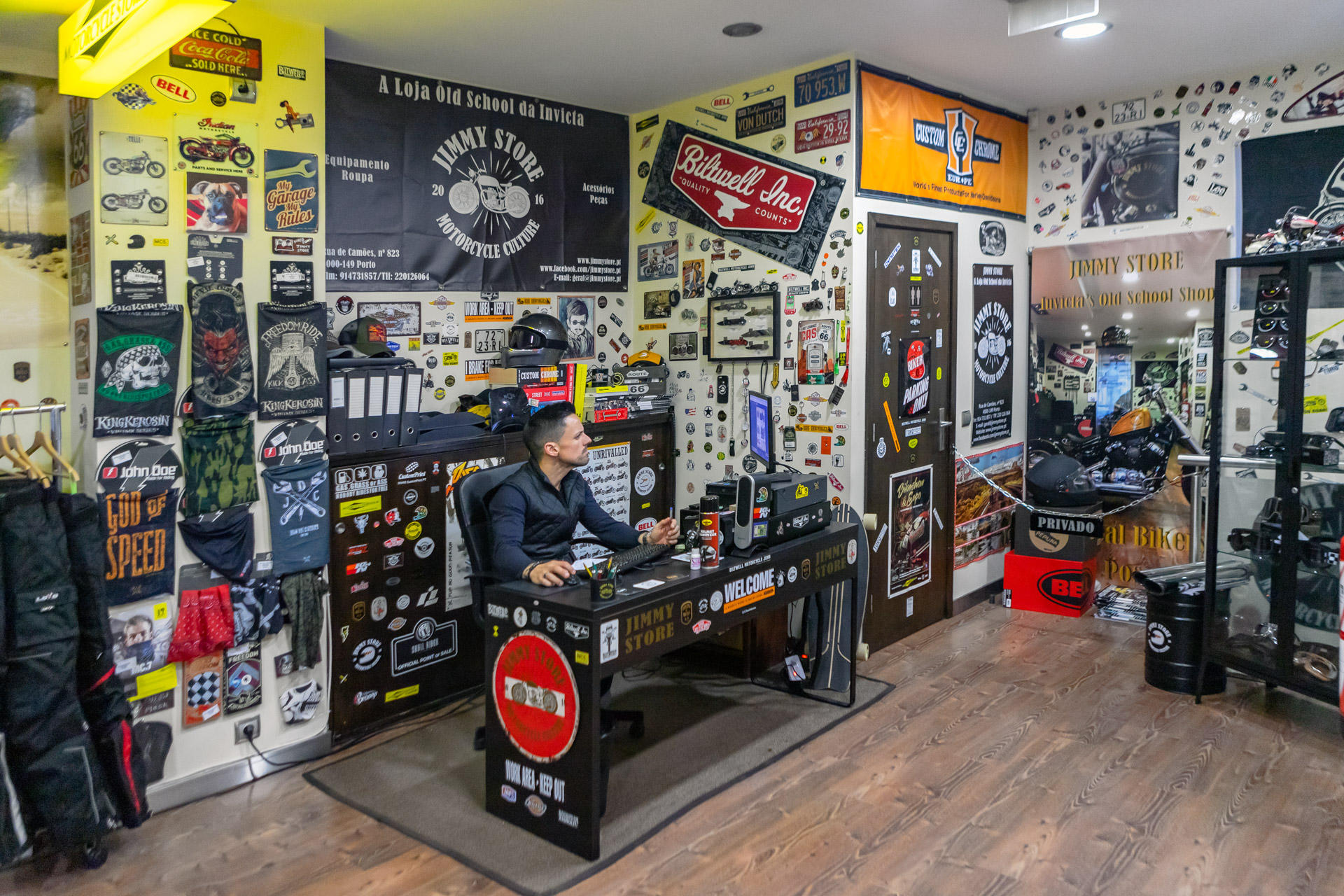 A JIMMY STORE surgiu do sonho de um apaixonado pelas duas rodas que sentiu necessidade de colmatar um pequeno nicho de mercado motard até aí negligenciado, o Old School, Vintage, Retro, Chopper, Bobber, Café Racer, entre outros. A JIMMY STORE é uma loja para motards dirigida por um motard. Bem que podia estar sobre duas rodas, mas está num estabelecimento que tem equipamento pessoal e de proteção, luvas, capacetes, óculos, entre muitos outros, e onde se pode adquirir material para personalizar e tratar das “meninas”. Se não quiser adquirir, pode sempre umas ideias sobre aquilo que mais vos apaixona. Obviamente, continuamos a falar de motos.