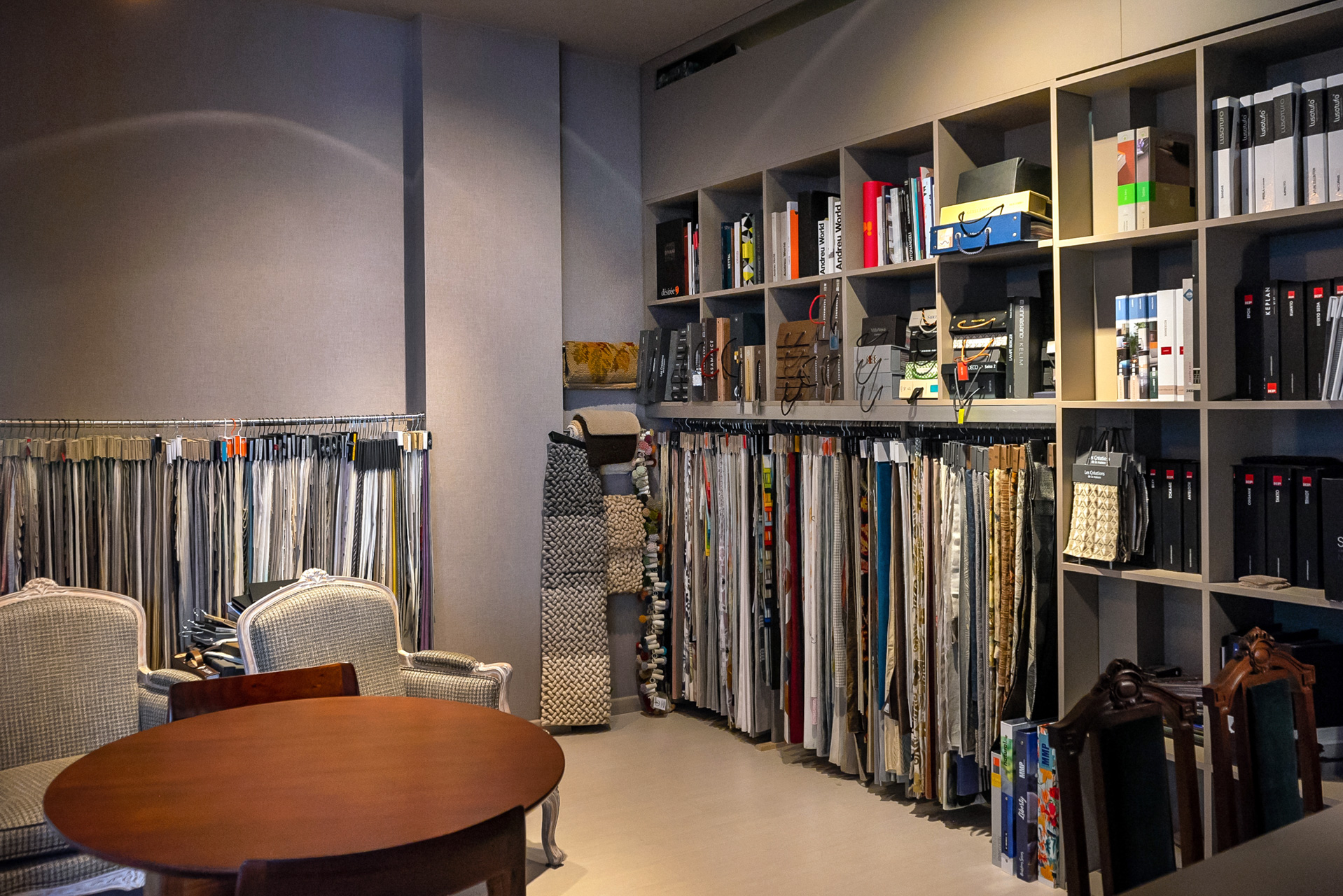 Decoração de interiores, móveis e sofás, cortinas, Venda e restauro de móveis novos e de época, tecidos e papéis de parede, tapetes e alcatifas de produção nacional.