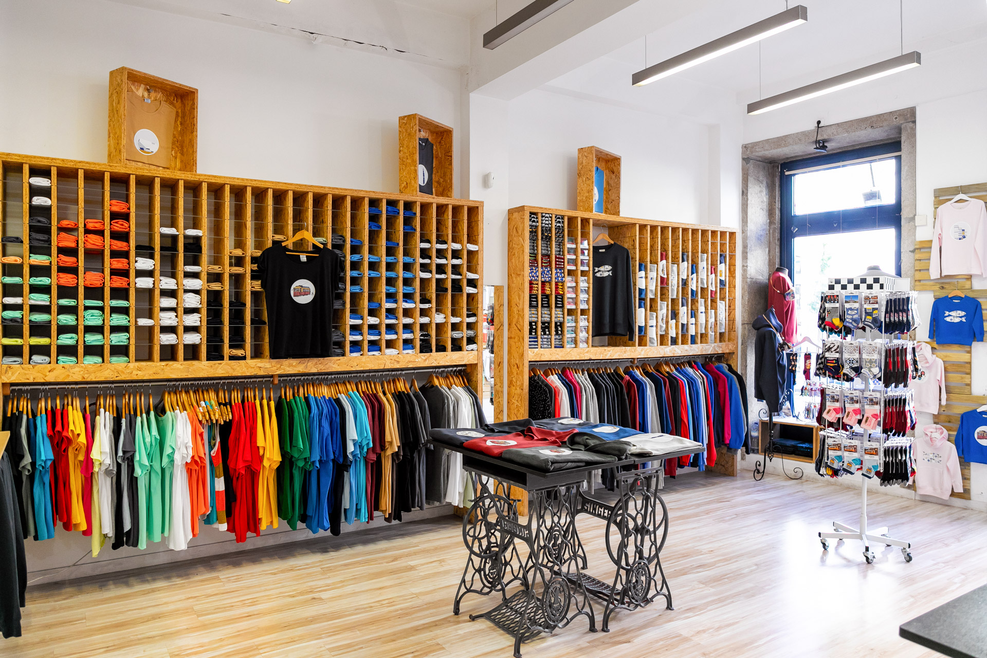 Vestuário, acessórios, artigos relacionados com o Porto.