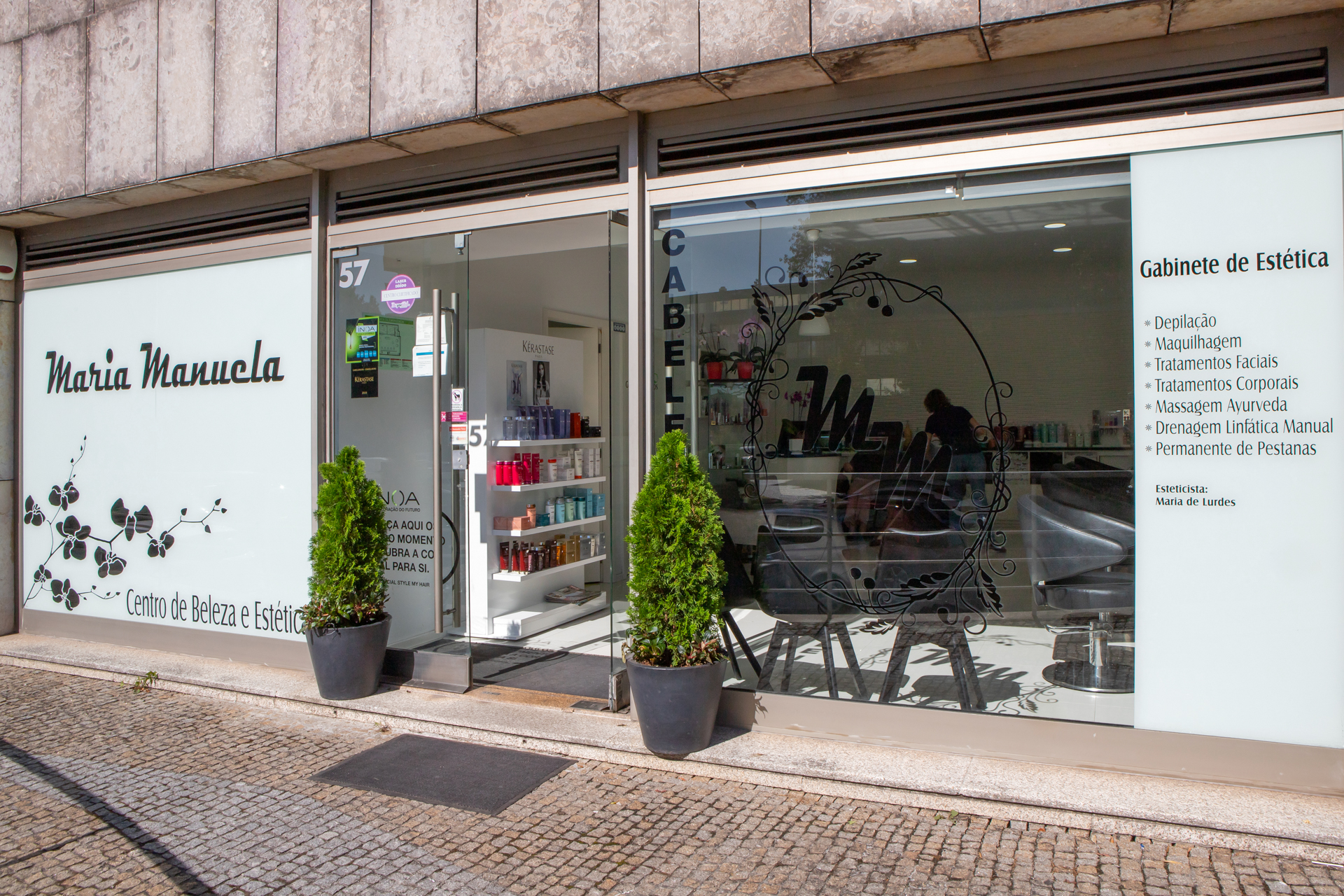 Fundado em 2012, o salão de beleza Maria Manuela tem vindo desde aí a cuidar dos cabelos e do bem-estar das suas clientes. Quer pretenda um corte de cabelo mais conservador ou uma mudança mais radical, este cabeleireiro dará resposta a todas as suas necessidades. Poderá ainda adquirir e usufruir neste salão de produtos das prestigiadas marcas Kerastase e Inoa. Para além de profissionais competentes na área de cabeleireiro, o salão Maria Manuela oferece vários serviços na área da estética, como depilação, maquilhagem, drenagem linfática manual, tratamentos faciais e corporais, massagem ayurveda e, ainda, permanente de pestanas.