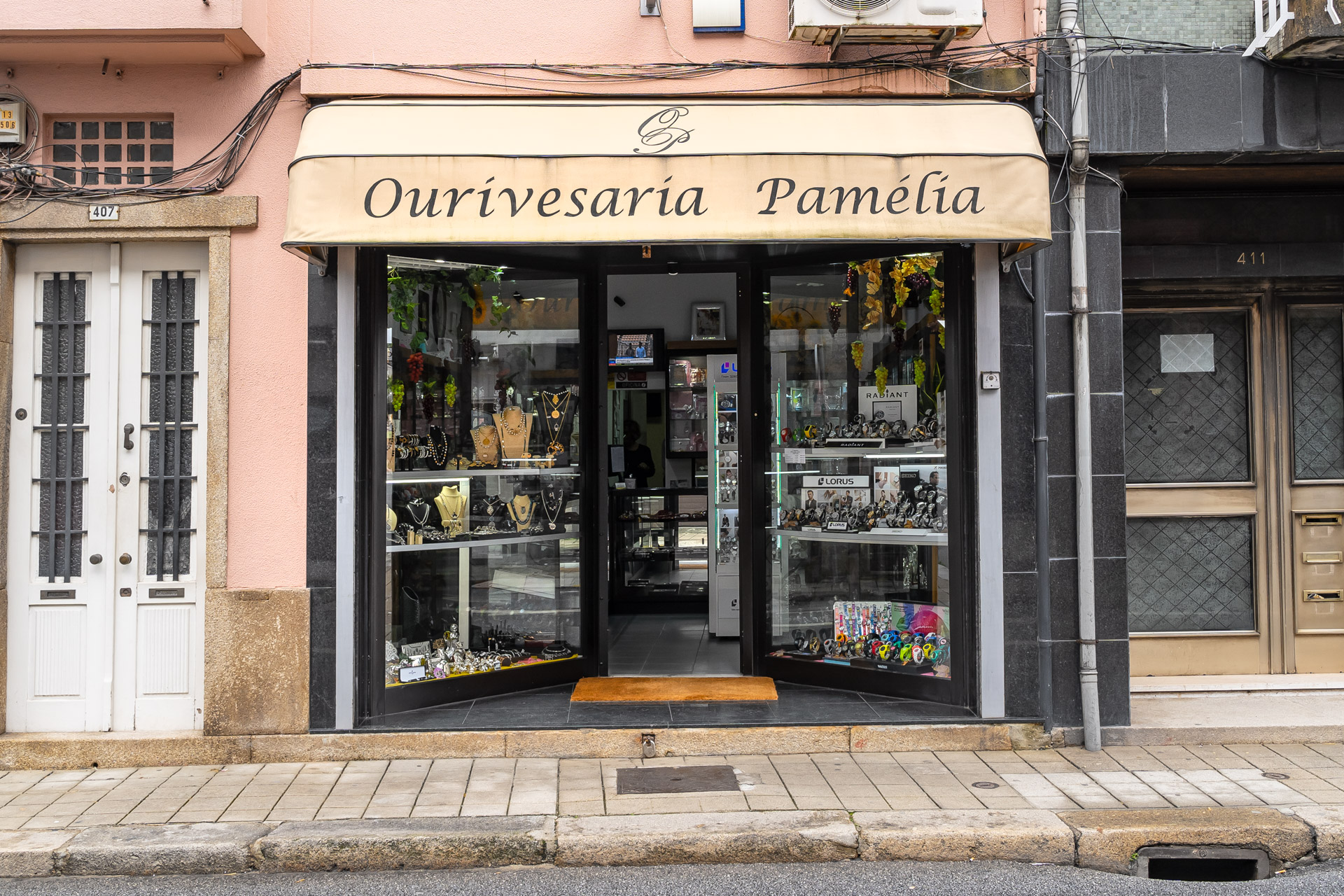 É um estabelecimento dedicado à ourivesaria e à relojoaria, fornecendo diversos serviços nestes dois setores, a todos os clientes que a visitam. Dispondo das maiores marcas de referência internacionais, a Ourivesaria Pamélia não só vende relógios mas efetua igualmente reparações, com serviço de colocação de pilhas na hora, pois dispõe de relojoeiros a tempo inteiro no estabelecimento. Na sua valência de ourivesaria, comercializa uma ampla seleção de produtos desta área, tais como anéis, brincos e colares, tanto em prata como em ouro. O seu atendimento cuidadoso garante que o consumidor dispõe sempre de auxílio na resposta a todas as suas necessidades.