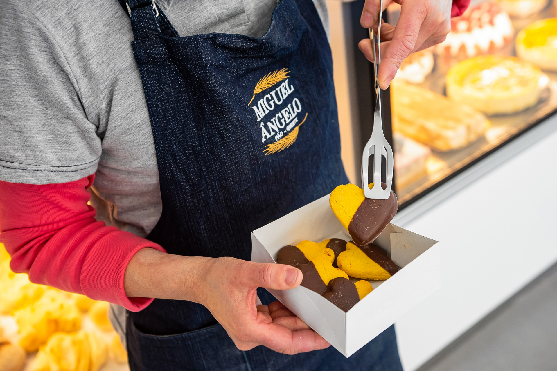 Num espaço luminoso, que preenche a curva da rua, com vidro a toda a volta, insere-se a Padaria Miguel Ângelo. Com um ambiente acolhedor, familiar e com uma decoração moderna, a Padaria Miguel Ângelo prima pela qualidade do seu pão e há para todos os gostos – pão bijou, pão da avó, bicos de regueifa, pão sem sal, integral, de centeio, bicos de pato, pão da Mealhada, paditas Miguel Ângelo, pão de forma, cacetes para rabanadas, só para mencionar alguns. Encontra também opções doces, com pastelaria típica portuguesa, como regueifas de coco, pão de ló de Ovar, tranças, podendo também encomendar bolos de aniversário personalizados. O atendimento é atencioso e a oferta convida à degustação.