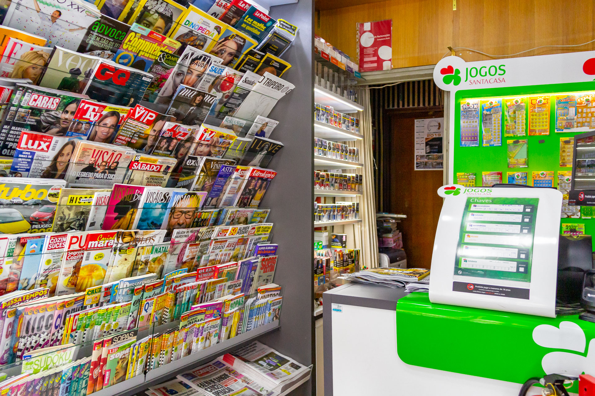 Payshop, revistas, jornais, cigarros, pague aqui, jogos da Santa Casa, raspadinha