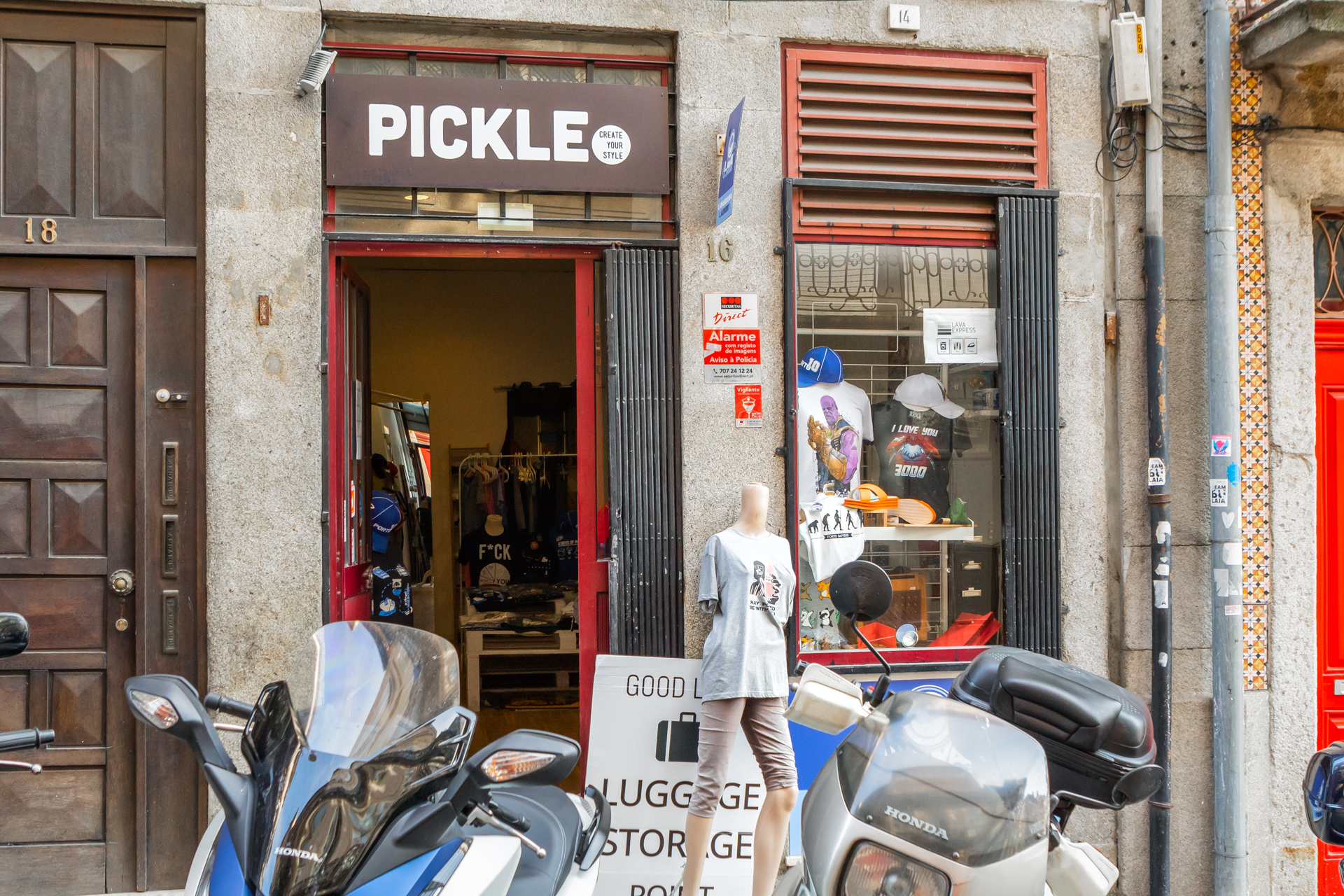 A Pickle é uma concept store que aposta na originalidade das marcas, nunca descurando a qualidade. Têm t-shirts de marcas internacionais, selecionando os designers de tendência, o que faz com que diariamente tenham produtos novos. Procura uma t-shirt com um cruzamento de marcas como a série Friends e os super-heróis da Marvel, bodies para bebé do Pokémon, figuras do Super Mário em Lego? A Pickle, provavelmente, tem. Se é fã de filmes, séries, personagens de banda desenhada e manga, este é o local para procurar a t-shirt ilustrada à sua medida. A Pickle é uma marca internacional, que tem quinze lojas abertas na Europa, na Alemanha, França, Itália, Espanha, tendo no Porto a única loja aberta em Portugal.