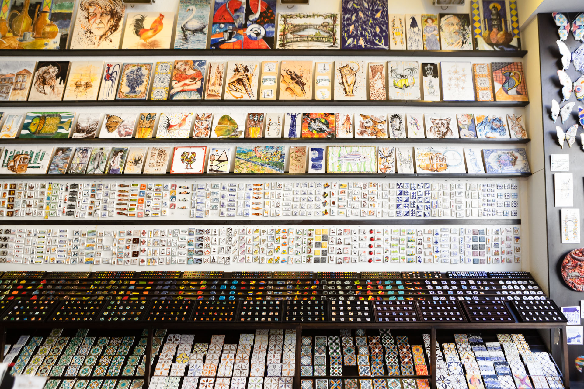 Painéis de azulejos, azulejaria, cortiça, bijuterias, lembranças