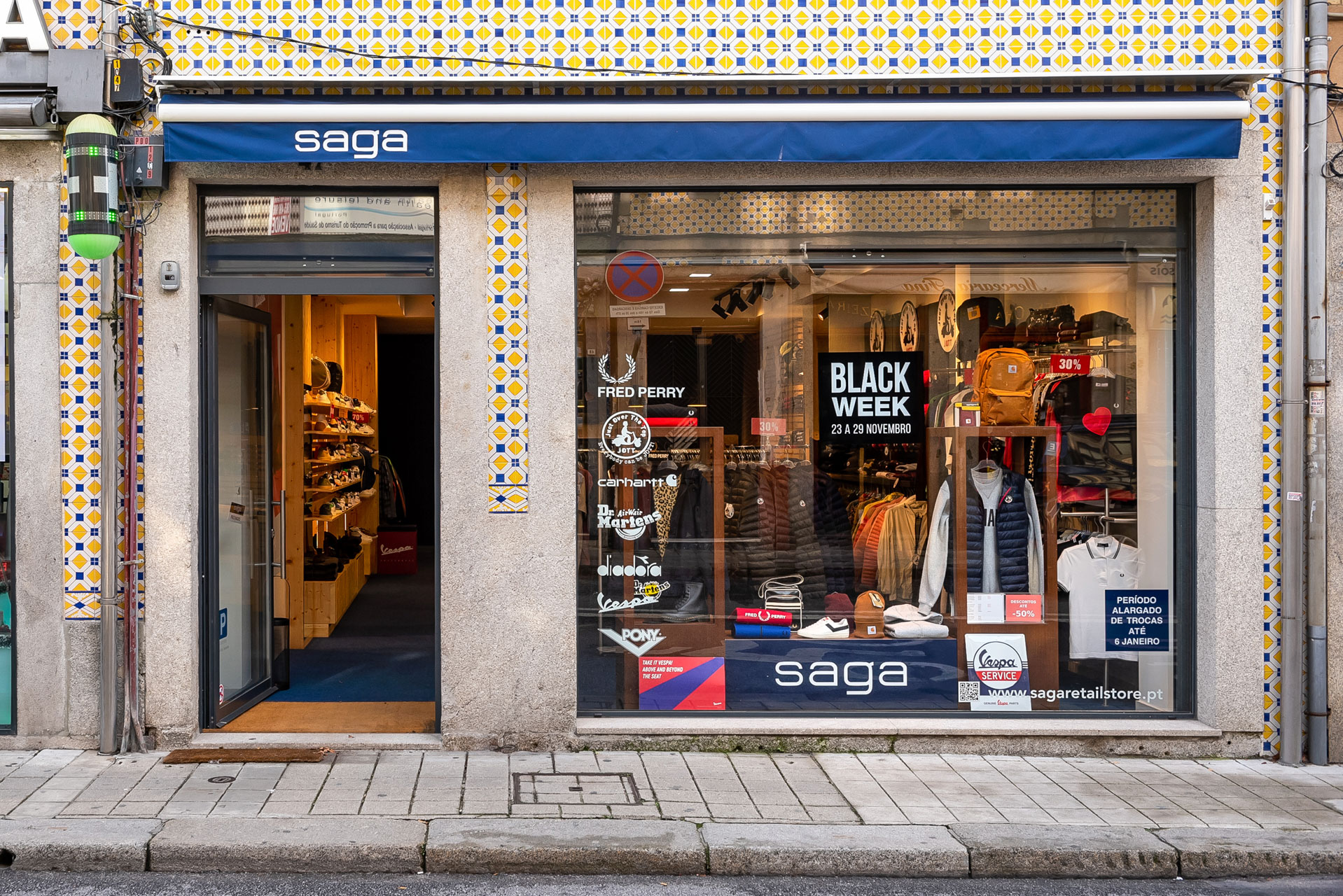 A loja Saga Retail Store é o projeto piloto da Sagatex Lda. no universo das lojas multimarca e do comércio online. A Sagatex é uma empresa de base familiar, fundada a 18 de abril de 1974, responsável pela importação e distribuição de várias marcas de calçado e vestuário para Portugal, tendo sido distinguida com o Prémio “PME Excelência” desde 2011. É desde 1977 a distribuidora da marca Fred Perry para Portugal, numa ligação que prevalece até aos dias de hoje. Atualmente, além da Fred Perry, é distribuidora das marcas Carhartt, JOTT, Vespa Footwear e PONY e agente das marcas Dr. Martens, Hunter e Diadora. A oferta presente na loja e no site é composta por produtos originais das marcas representadas.