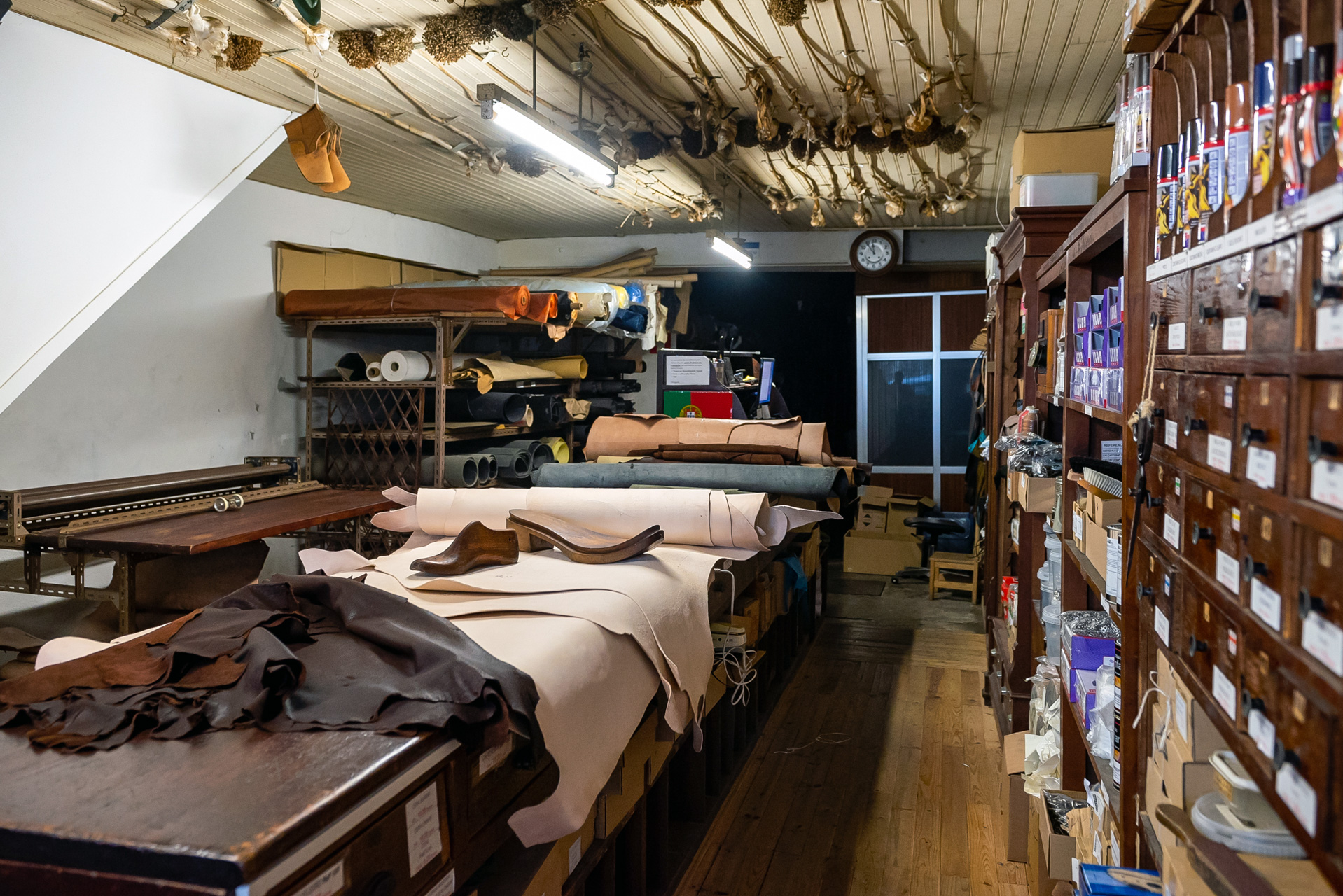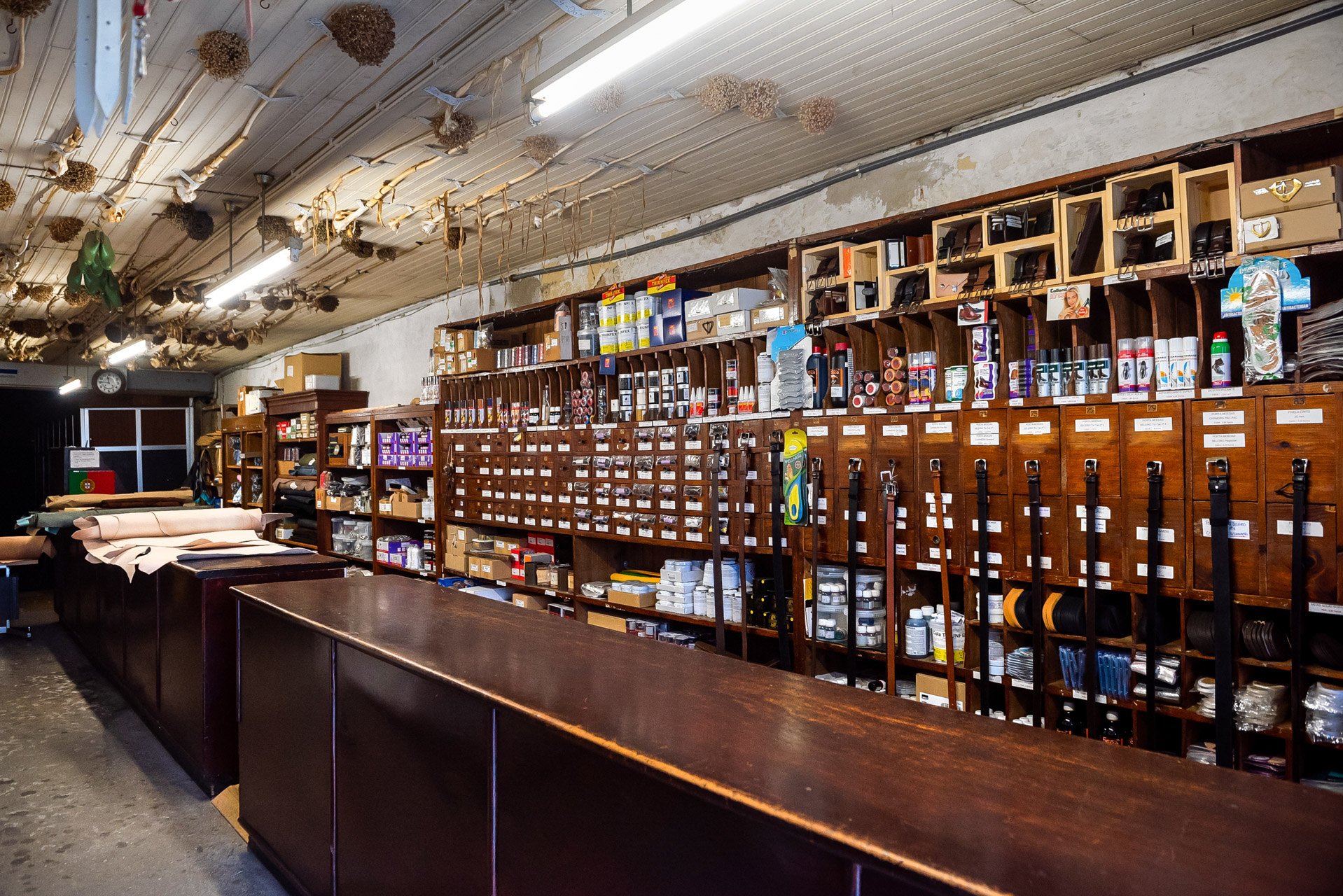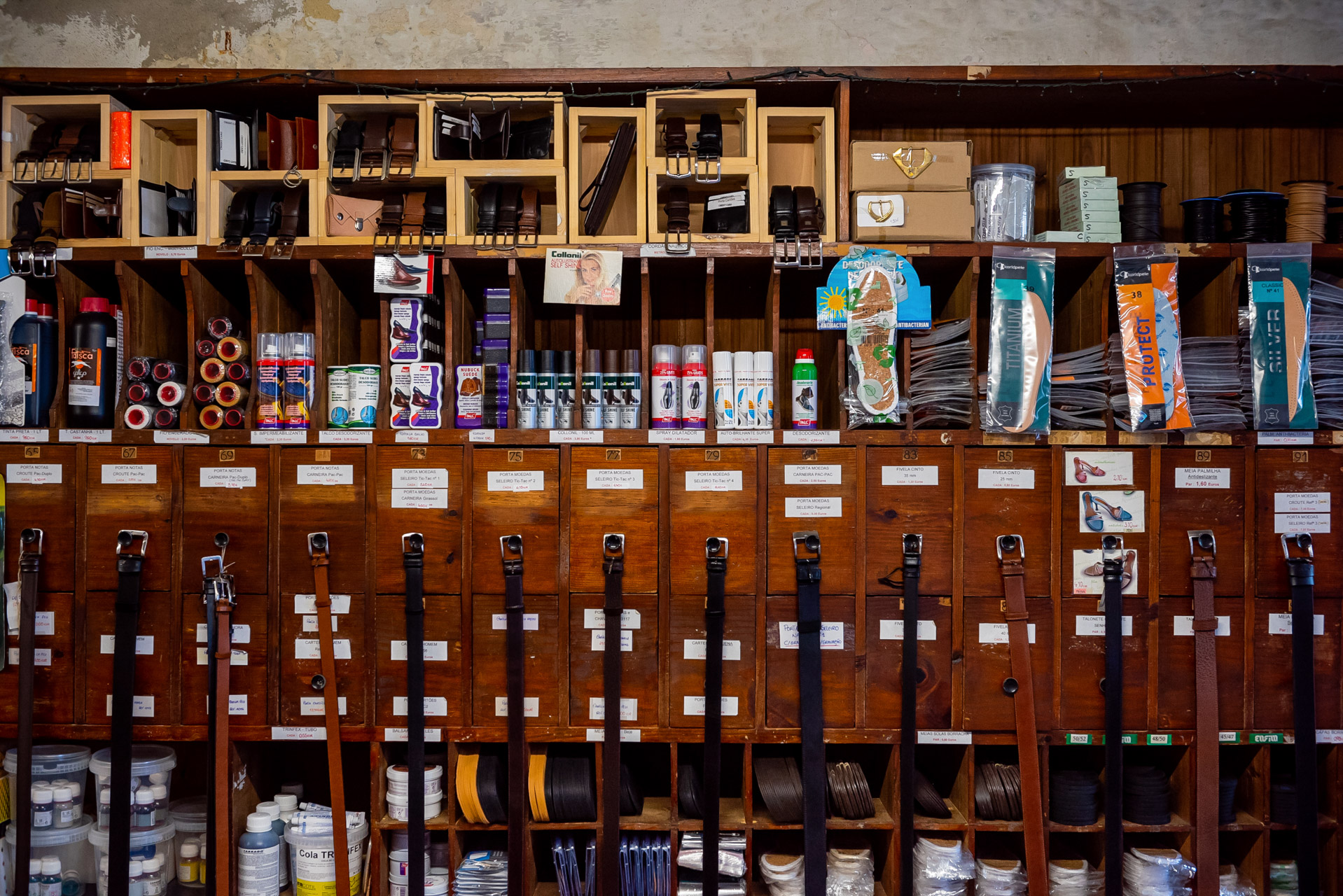 Solas e cabedais, cintos, carteiras, porta moedas, palmilhas, escovas, fivelas, colas, tintas, molas, pomadas, napas, peles, borrachas, material para reparação de calçado, artesanato.