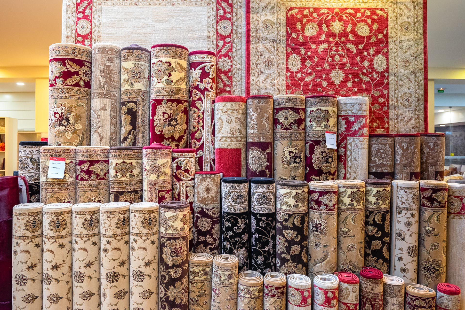 Alcatifas, tapeçarias orientais, cortinas, estores, papeis pintados, relvas artificiais, pavimentos, tecidos e artigos de têxteis-lar
